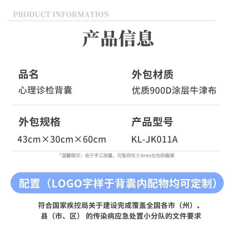 | 產品名稱: | KL-JK011A心理診檢背囊 | ||